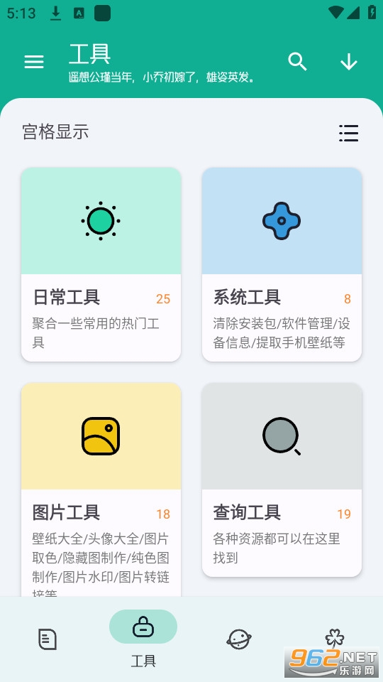 包含了天气、日历、计算器、影视、直播、星座、查询、图片处理、小游戏等等功能,用户可以通过这些工具快速地获取各种信息和进行各种操作。
