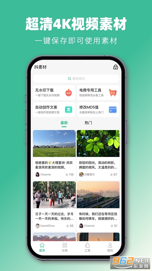 各种风格类型的视频素材这里都有,一键下载保存本地就可以剪映二次剪辑生成个人专属的视频。