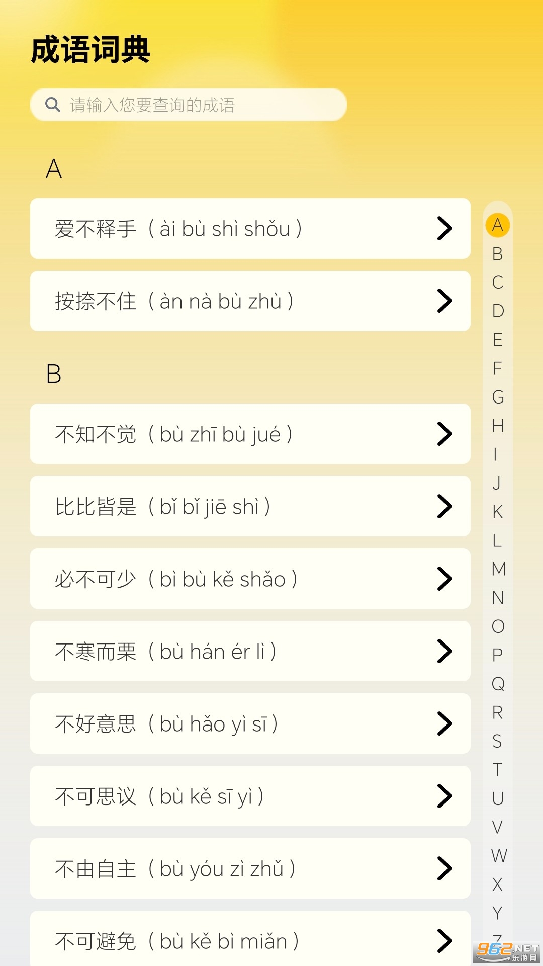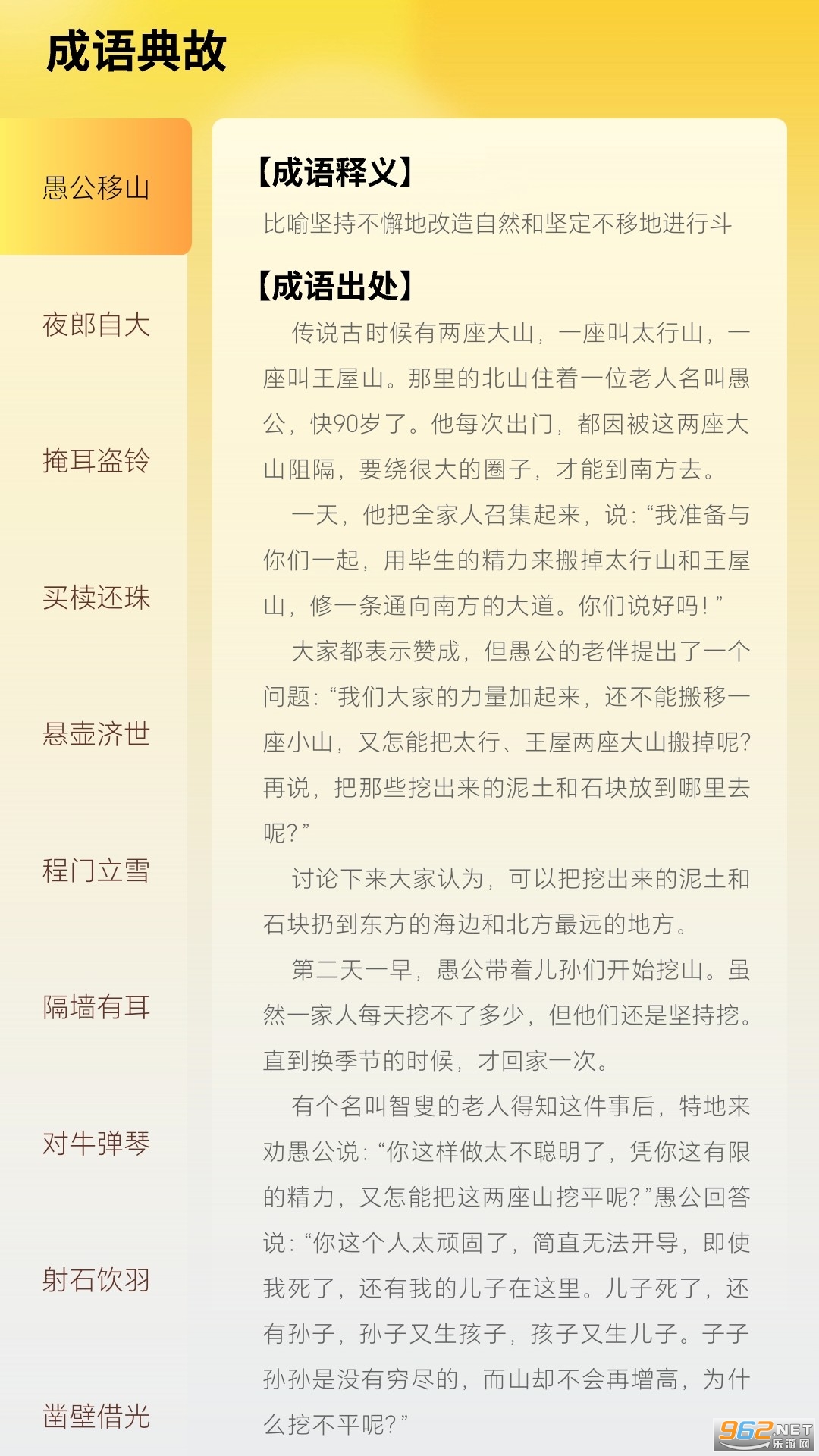 3、集成快速查找和收藏成语的功能,方便用户随时查询成语,更好地记忆和使用。