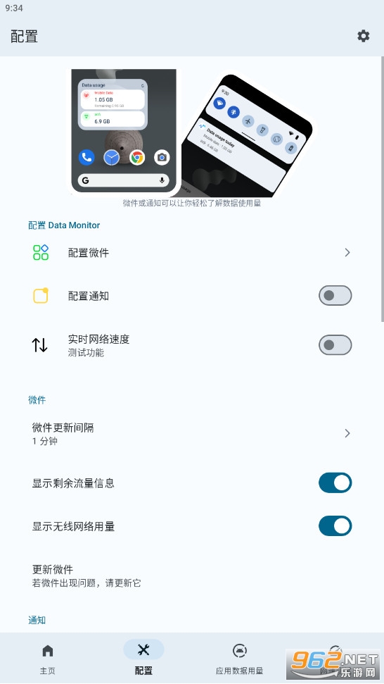 支持传输速度显示器和小工具功能,方便用户快速查询数据使用情况。