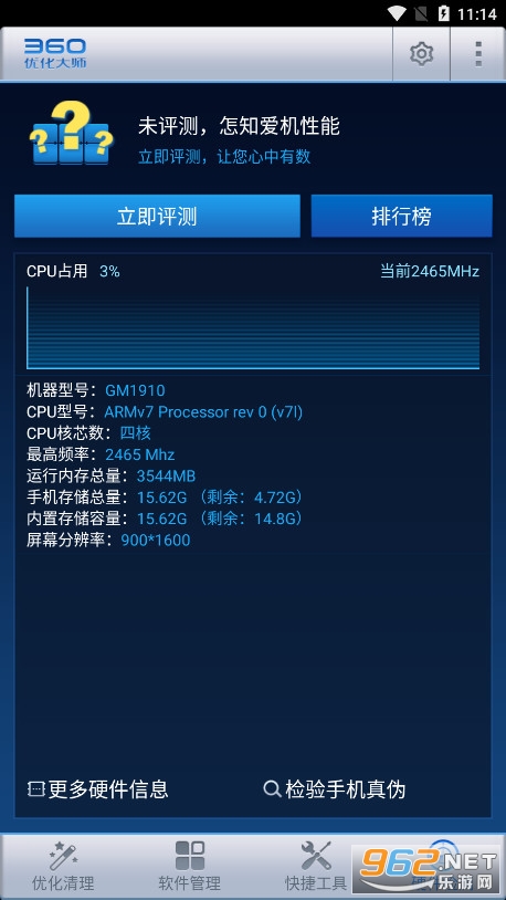1、支持进行手机的测评功能,支持各种不同的手机型号智能进行识别的功能,能查看到手机的详细信息,特别的好用,一键进行手机的系统优化更方便。