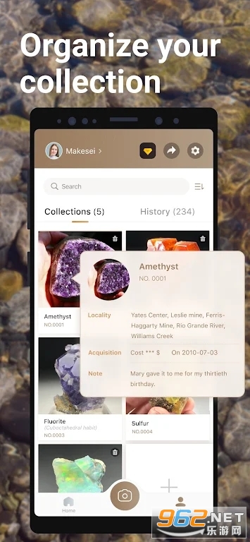 展示您采集岩石时收集到的物品和珍宝,创建您私人的岩石博物馆。现在您可以在此记录下您与岩石和矿物之间的故事,轻松标记石头的编号,采集的地点和日期、价格,甚至可以备注下任何您观察到的岩石特点。