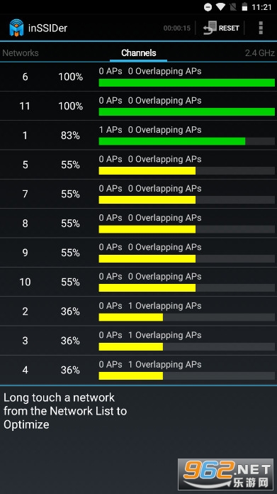 《inSSIDer安卓中文版看信道》是一款开源免费的无线(Wi-Fi)信号扫描工具,它比系统自带的无线扫描工具更加强大,除了提供信号强度等基本功能外,它还能搜索SSIchannel,RSSI,加密方式,最大速率以及MAC地址等信息。以最优解的线路,为用户带来极佳的上网体验!