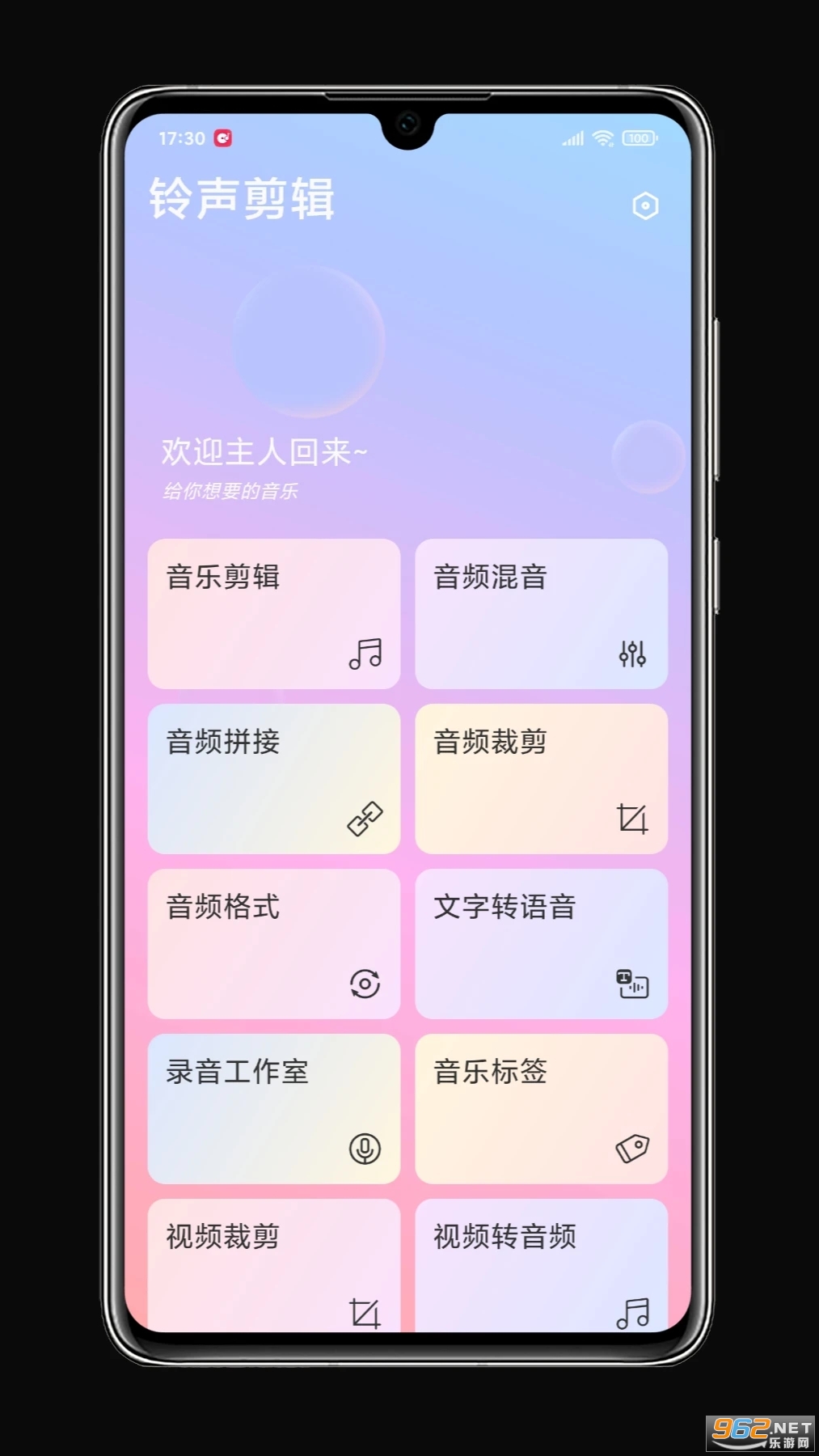 1、大家可以下载风云音频处理大师进行使用,这里的音频处理功能是很多的,用户可以轻松的上手进行音乐的编辑剪切,我们在首页可以看到很多的音乐剪辑的功能,大家可以点击音频剪辑进行编辑。