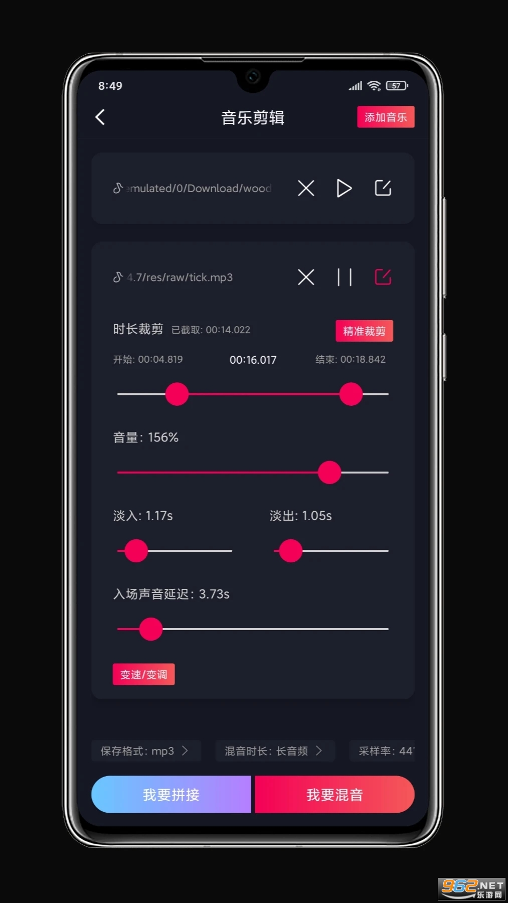 1、音频裁剪、拼接、混音、音量调整、淡入淡出