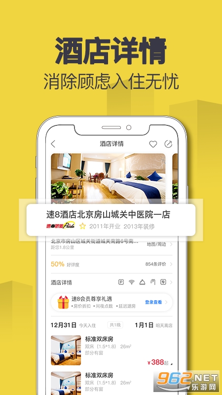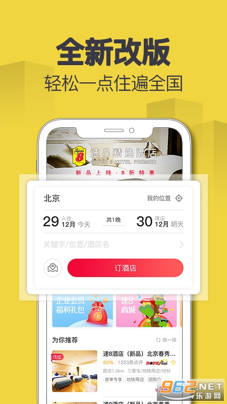 ·方便快捷的预订全国200多个城市的近千家速8酒店,随时查看距离您最近的速8