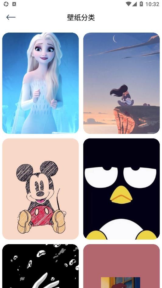2、在壁纸分类界面,点击卡通壁纸图标。