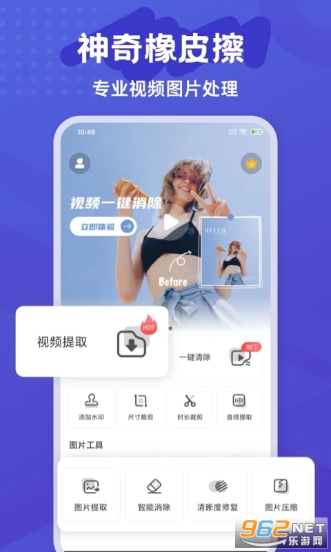 《神奇橡皮擦》一款多功能的视频和图片处理工具,具有裁剪时长、视频加水印、视频画布、图片去水印、图片变清晰、物体擦除等多种功能。用户可以通过这款工具轻松编辑和处理视频和图片,包括裁剪视频时长、修改视频画布、添加水印、去除水印、清晰化图片、擦除物体等。神奇橡皮擦采用智能算法,让涂抹秒变原图,同时支持高清无压缩保存,为用户提供专业的视频和图片处理体验。