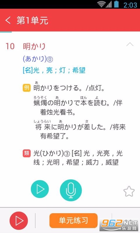 想要通过日语专业N3考试的小伙伴们千万不要错过这款非常好用的《日语N3红宝书》APP,这是一款功能强大的日语单词背诵软件,覆盖了N3考试相关的所有单词,软件内将单词分为多个不同的单元,还有相关习题帮助用户学会灵活使用,此外软件中还有发音教学,帮助用户提升口语。