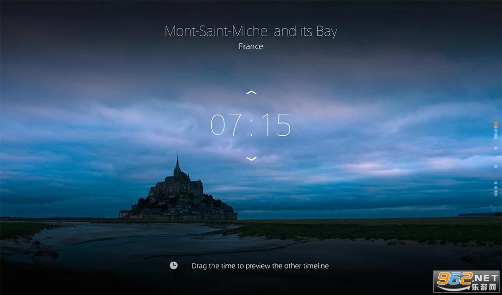 用户可以通过垂直滑动时间显示来激活Time-shift模式,以惊叹于索尼“α(Alpha)可换镜头相机”在一天中的不同时间拍摄的“世界遗产”照片。