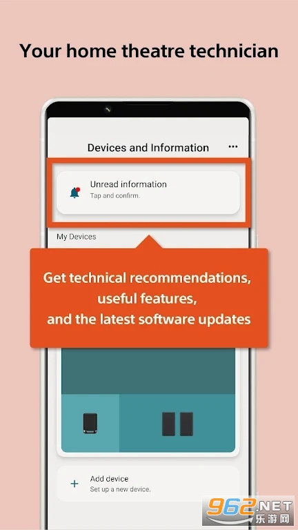 我们的应用程序将成为您家里的专属技术员。获取技术建议、发现有用功能并了解最新的软件更新,让您的私家影院更加完美。
