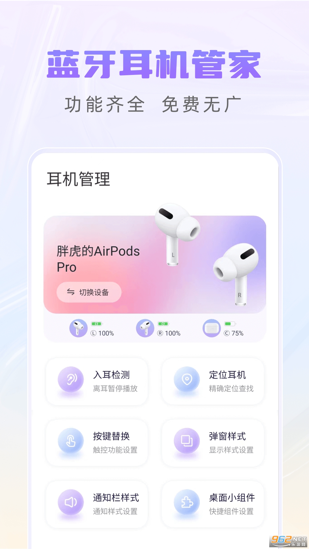 -支持快捷配对耳机,智能识别耳机型号,精准显示蓝牙耳机的当前电量