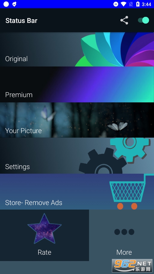 添加您自己定制的图片以设置状态栏背景。可以选择任意图片作为您的状态栏背景免费!
