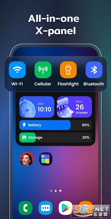 这是一款专为所有 Android 设备设计的多彩小部件工具。它提供了一系列精美的 iOS 16 风格小部件,让您可以在主屏幕上一键定制,使手机界面更具个性。这款工具涵盖了各种小部件类型,包括时钟、照片、X面板、日历和天气等,您可以根据自己的需求和喜好来添加。其中,X-Panel 小部件集成了手机状态、日期和时间、网络连接、电池电量等信息,还可以快速开关手电筒、Wi-Fi 等。照片小部件让您的手机屏幕充满珍贵回忆,支持照片幻灯片播放。时钟小部件提供模拟和数字时钟样式,让您的屏幕更加绚丽多彩。天气小部件为您提供实时的当地天气信息,简洁大方的显示界面让信息一目了然。