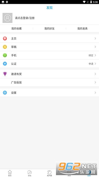 3、点击我的,可以查看自己账号的收藏、好友、发过的贴子等信息