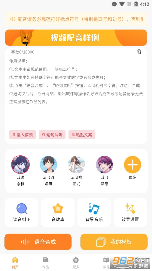 2、配音软件支持多音字读音纠正、自定义插入停顿,配音自然流畅