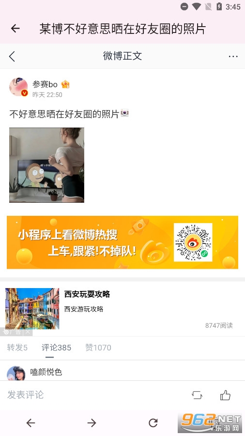 《某博大赛助手》该软件提供了一个集合了某博平台上各种奇葩养眼大赛的集锦,用户可以下载、收藏,并每天获得更新。它内置多个接口,为用户提供丰富多样的内容,让用户能够轻松地浏览和收集自己喜欢的内容,尤其是美女短视频以及养眼大赛。