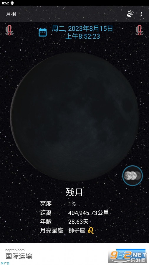 《月相Phases of the Moon》一个关于月相的全面应用程序,提供实时的3D月亮模拟,包括月球的各个阶段、农历、壁纸、狩猎/钓鱼预报等功能。用户可以通过这个应用程序深入了解月球的不同状态和特征,探索月球的各个方面,从而更好地理解和追踪月球的变化。