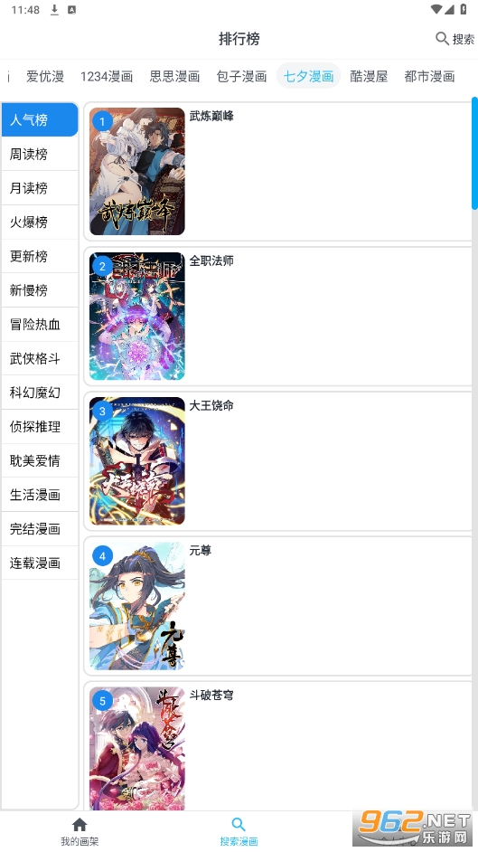 2、还支持刚刚更新、订阅排行以及点击排行、人气榜单等分类;