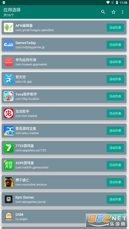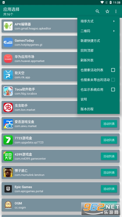 先选择一个应用,再选择应用里的活动,创建快捷方式。