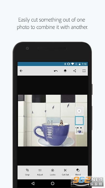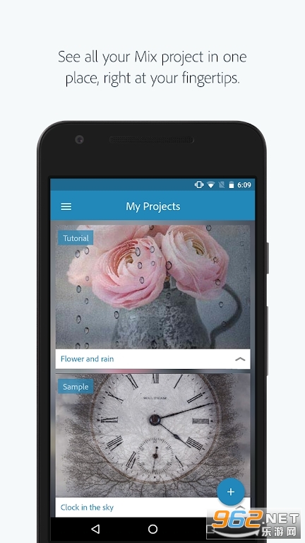 使用Photoshop Mix 改变您的照片。这是能让您随时随地裁剪与结合图像、改变颜色以及优化图像的照片编辑器。