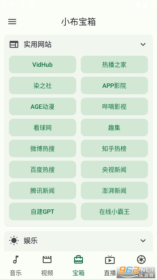 《小布百宝箱》是非常好用的手机工具箱以及资源库软件,为大家准备了很多强大的功能,界面简单,没有任何广告,海量的音乐、视频以及直播等你进行阅览,另外宝箱中还有很多实用的工具。快来下载体验吧!