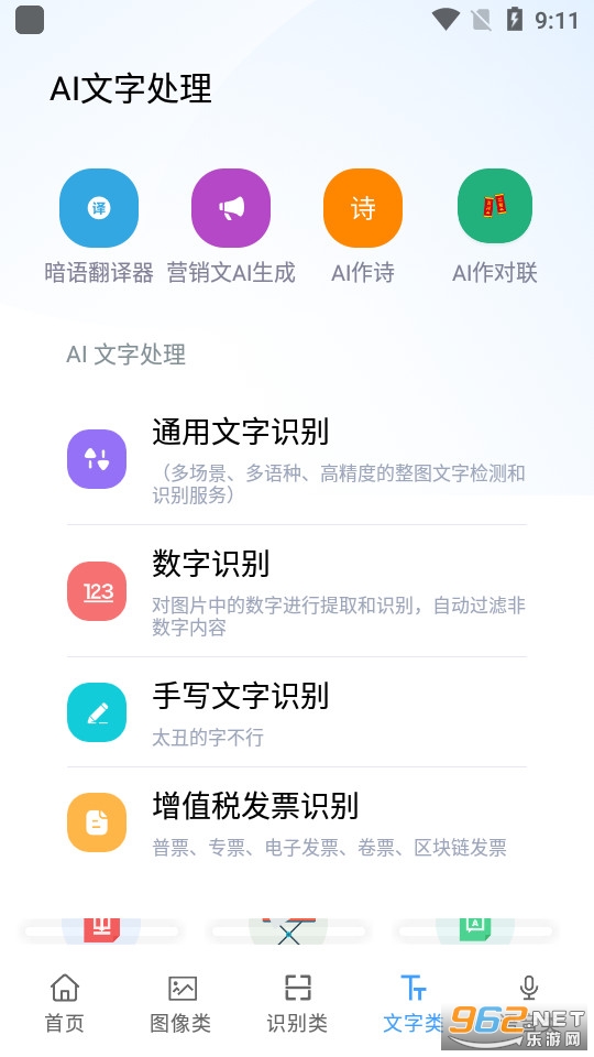 有暗语翻译、营销文AI生成、AI作诗、AI对联、通用文字识别、手写文字识别、发票识别等等,看不懂别人写的字,直接识别;什么藏头诗、营销小作文一键生成。