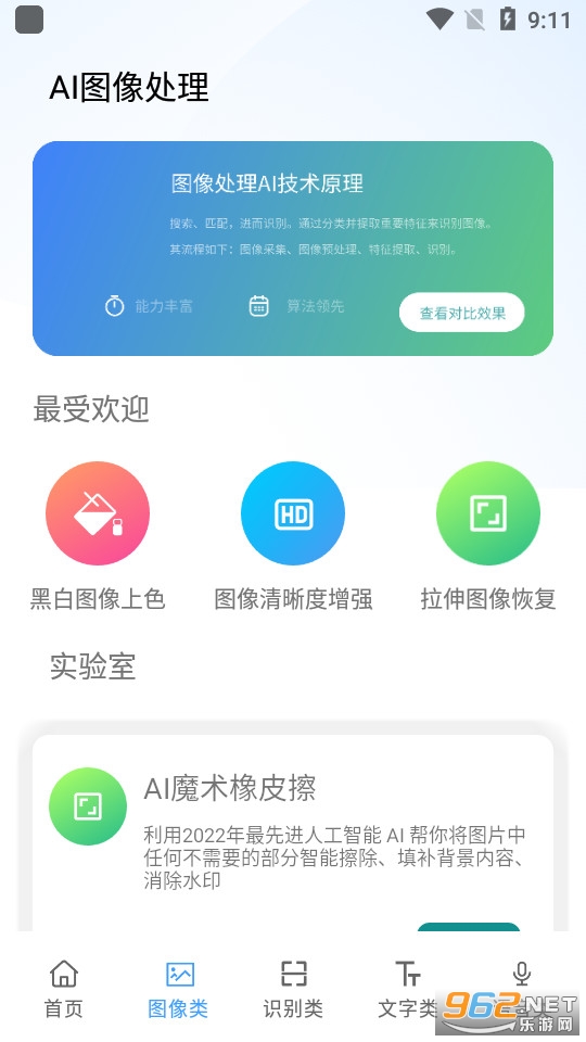 很实用的一款智能ai处理工具,通过软件对图像文字进行各种识别和转换,有很多在日常生活中很实用的功能,比如对黑白图像进行上色,或者是增强图像的清晰度,或者是识别各种物体等。快来下载吧!