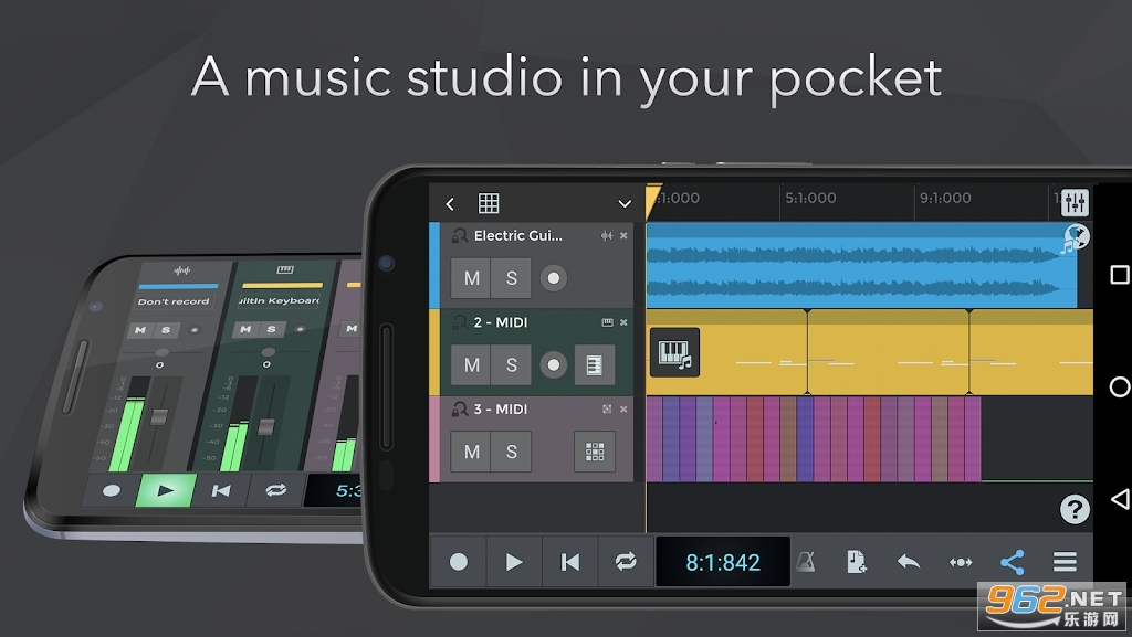 n-Track Studio(多轨录音软件)手机版中文免费版是款功能齐全专业的便携式音乐制作应用程序,可以录制几乎无限数量的音频、MIDI 和鼓点音轨,并在播放过程中混合并添加效果,比如吉他、放大器、 VocalTune和混响,专业音效与音频处理,一键分轨导出,提供最为强大的剪接与编修能力,程序容易使用,适合小型录音棚和音乐爱好者使用。