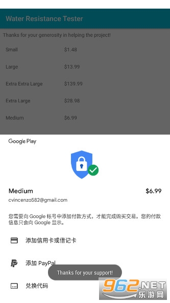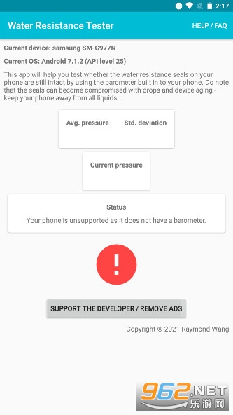 《Water Resistance Tester》是一款 Android 应用,它根据手机内置的气压计来测试手机的 IP67/IP68 防水密封是否完好,简单易用,只需要按一下屏幕。当获得对勾的时候,就证明防水气密性没有问题,依旧防水。