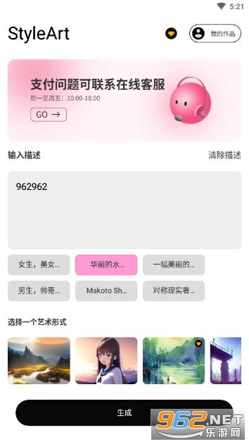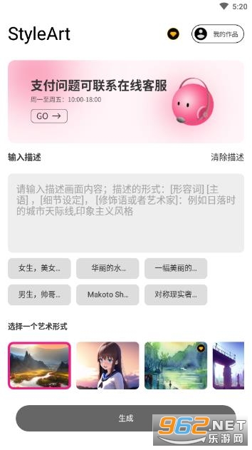 将文字变成迷人的数字艺术作品!你只需要输入一个提示语,选择一种艺术风格——然后看着Styleart在几秒钟内将你的想法变成现实!