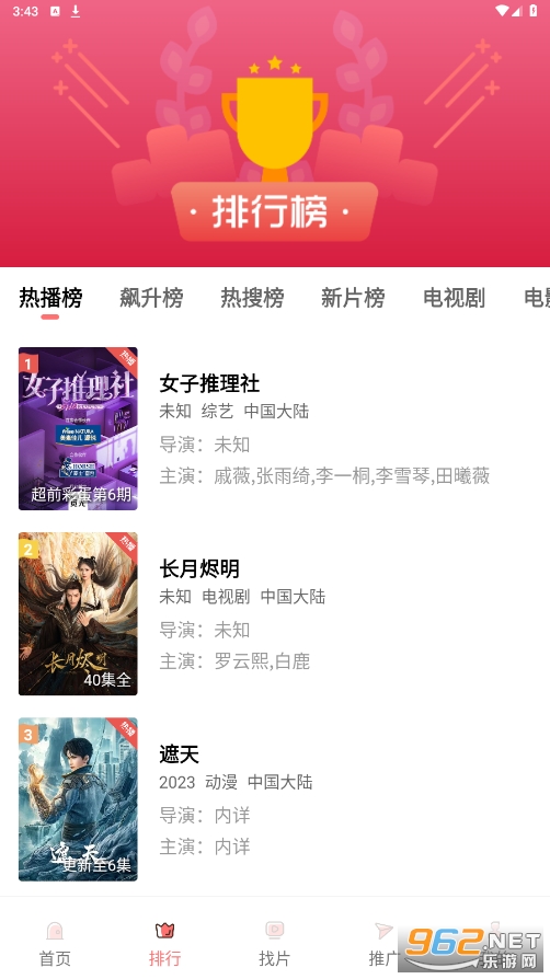 5、【丰富观看榜单】热播榜、热搜榜、新片榜、飙升榜等宣传给您的好友,操作十分简单;
