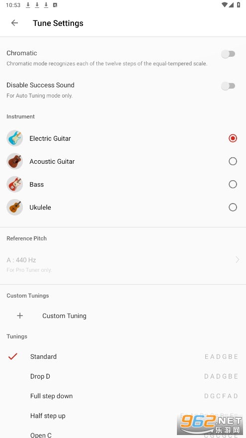 预设调音-26个可用的调谐,包括:标准(EADGBE),开放G,drop d,open d and Drop C.