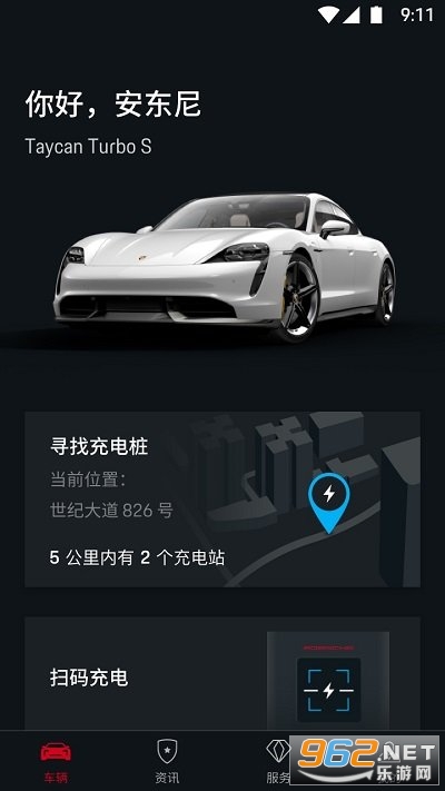 车辆:保时捷车主可以访问到自己的爱车型号,使用常用服务,查看附近充电站的数量和扫码充电入口。非保时捷车主可以访问保时捷官网。