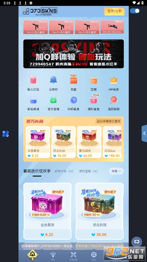 373Skins开箱是一个专注于CSGO饰品市场的在线交易平台,汇聚了来自全球各地的大量高质量饰品,供玩家选择购买。从普通的玩家到专业的饰品收藏家,373Skins开箱都能满足你的需求。
