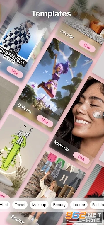 功能强大且易于使用的视频创建和编辑应用程序。您可以通过分步教程拍摄时尚短视频,也可以找到包含著名歌曲的病毒式视频模板。加入Zoomerang的庞大社区,参与挑战,关注新兴社交媒体趋势。在视频编辑方面,Zoomerang提供了丰富的工具,让您像专业人士一样创建和编辑视频,添加文本、贴纸、GIF和背景音乐,让您的作品更加精彩。快来下载Zoomerang,用您的创意制作令人惊叹的电影效果吧!