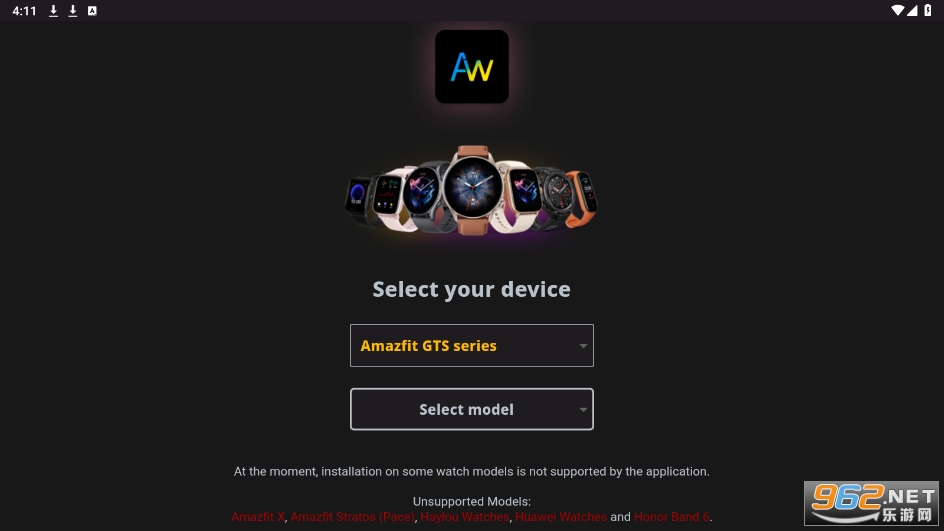1、首先需要在本站下载安装AmazFaces,进入该软件后首先需要选择你的设备,软件内提供了市场上大多数的手环,只需选择你的手环型号即可