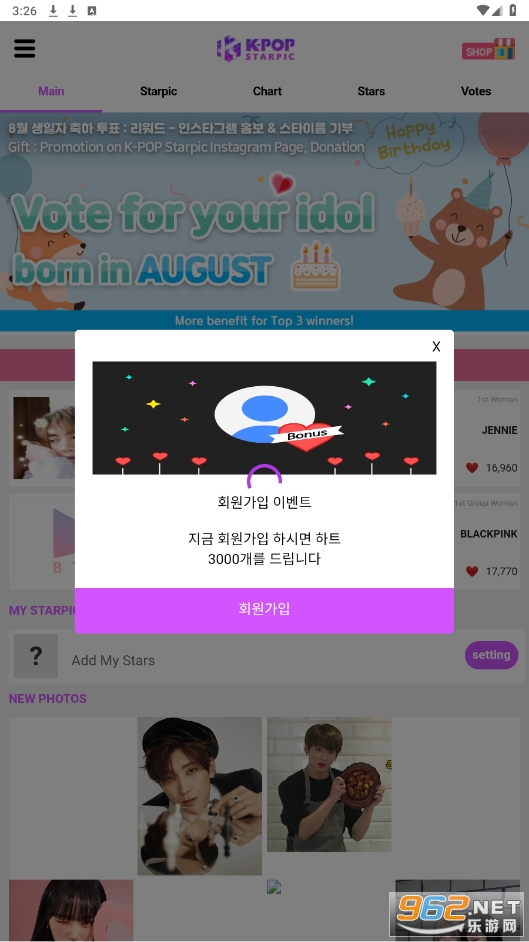 您可以在K-Pop Starpick应用程序中使用在“我的明星”中打开的图片。