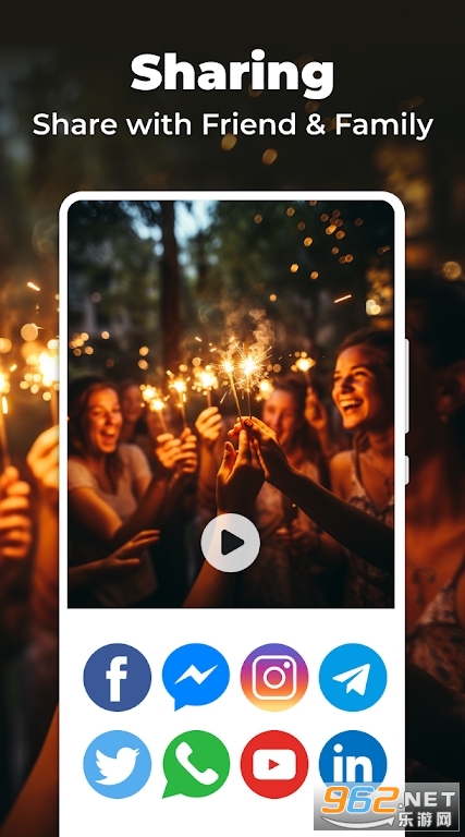 将您的照片传播到视频中,您可以通过与朋友聊天在社交网络上分享使用 Slideshow Maker 创建的视频。