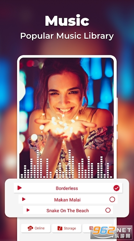 SlideShow Maker 拥有一个包含许多不同主题的大型音乐商店,可以制作充满活力、色彩缤纷和闪闪发光的视频。