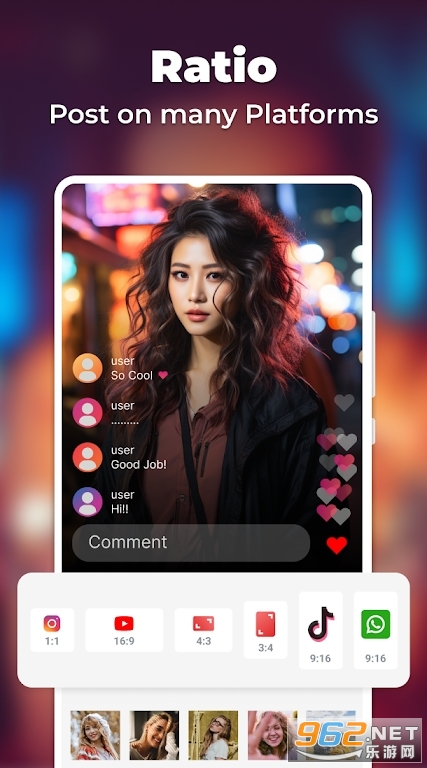 一款100%免费的照片视频制作器,拥有超过2000万用户。通过该应用,您可以将照片、音乐和效果合并到视频幻灯片中,制作出充满活力和色彩的精彩视频。应用内提供多种音乐、过渡效果和彩色帧供您选择,您还可以调整图像传输时间。无论是为特定主题制作视频,还是为纪念特殊时刻而创作,Slideshow Maker让您的照片动起来,让您的回忆生动展现。制作完成后,您可以轻松分享视频到Facebook、Instagram、Tiktok等社交平台,与朋友分享美好时刻。
