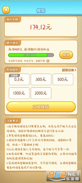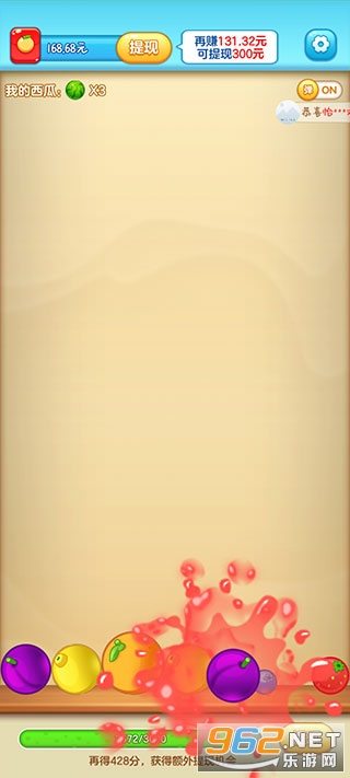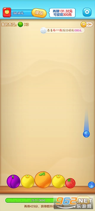 4、每次合成水果后都会获得一定的积分,累计满积分条就可以进行随机抽奖,并获得更多的提现金额。
