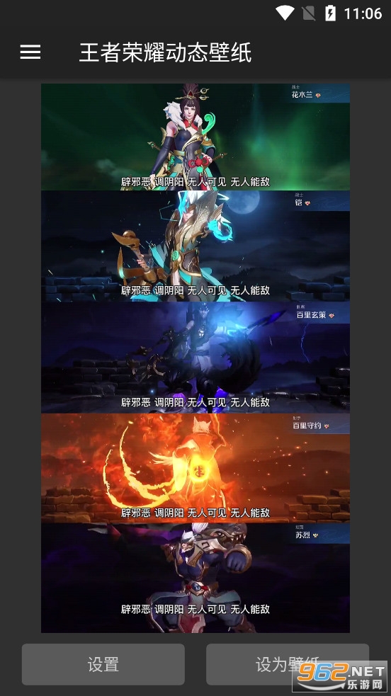 趣味的王者荣耀高清壁纸软件,加入了众多的王者荣耀英雄角色,每个角色都有着炫酷的动态效果,朋友们可以一键设置为手机桌面,有需要的朋友可以下载试试。