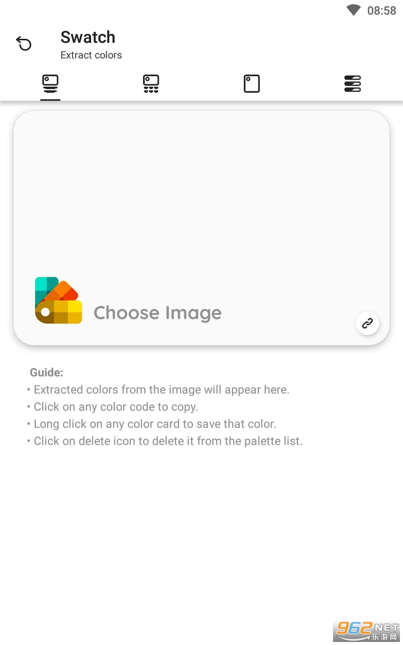 使用此应用程序,您可以从任何图像中提取颜色并将颜色代码复制到剪贴板。