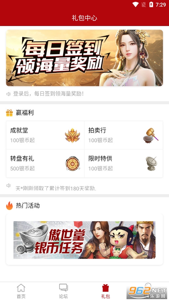 登录即送100金币 ,更有超多老玩家回归福利及新服狂 欢活动等你来体验。