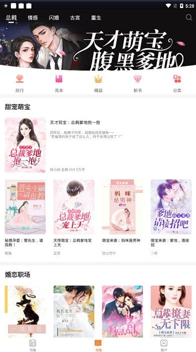 1、首先下载安装软件,打开后可在分类或搜索栏中快速查找感兴趣的小说,资源丰富网文齐全,轻松找到想读的书。