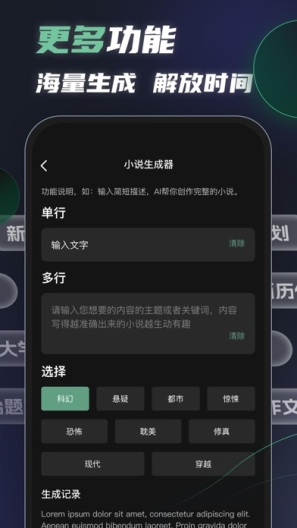 各种媒体文案创意写作,帮您轻松生成各种高质量创意文案;跨境、电商各式产品描述、关键词自动生成