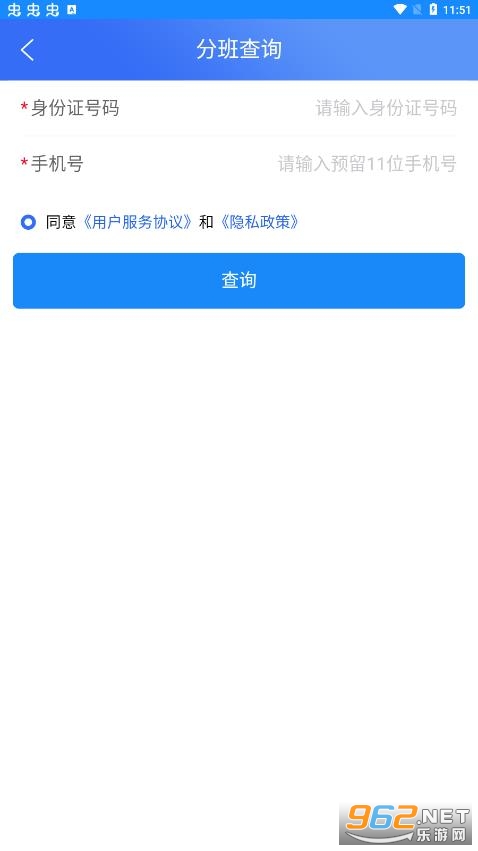 2、进入分班查询页面后输入学生身份证号码和预留手机号;点击查询,短信将通知学生分班和住宿信息。(军训期间全员住宿)