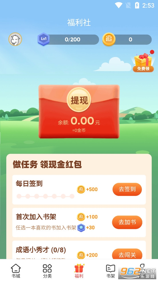 1.好书免费,新人福利畅读全场;