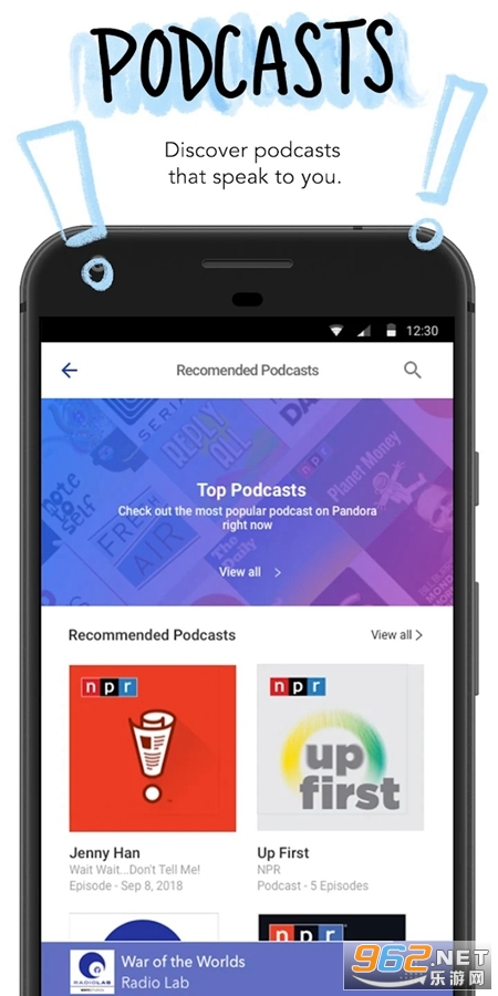 通过Pandora的播客,找到你喜欢的东西,听那些有意义的个性化建议。只要在你的手机或平板电脑上搜索,然后开始听,然后点击+添加到你的收藏中。通过简单浏览和点击推荐的播客找到一些新的东西,找到超过1400个播客,包括天狼星节目,无论你是在Pandora付费,加上还是在广播。